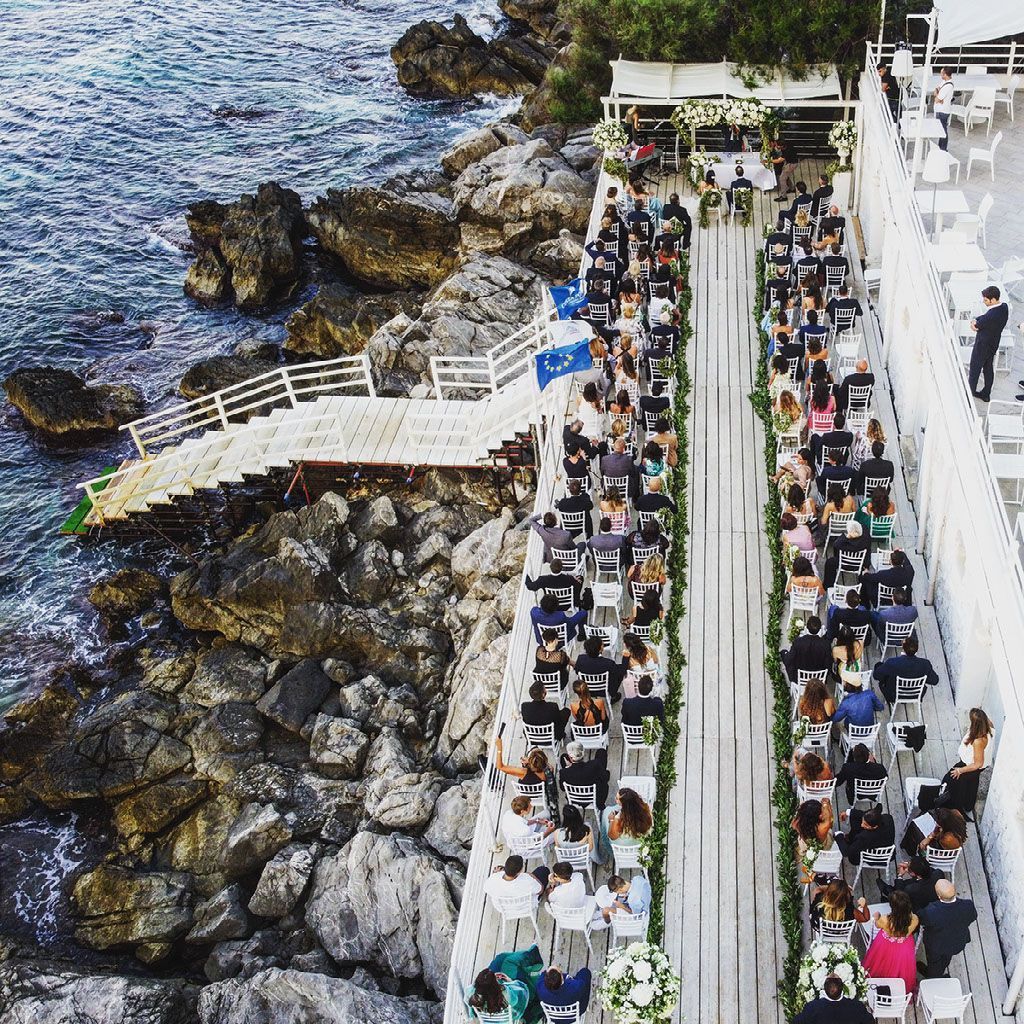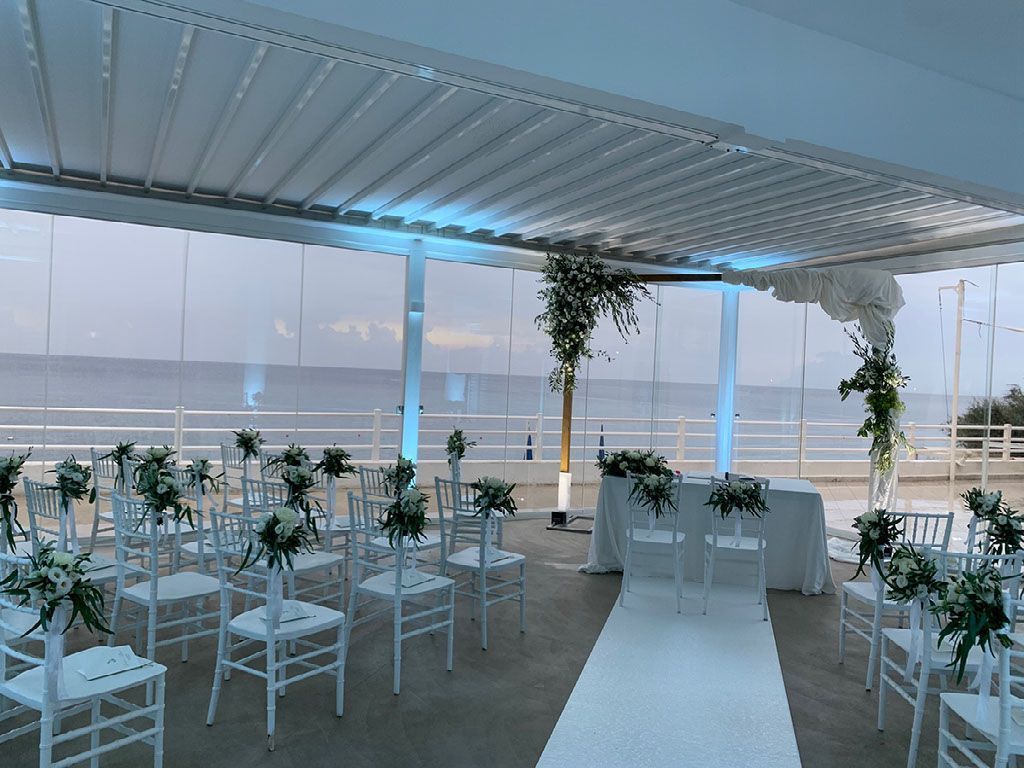 La struttura vanta una splendida terrazza panoramica con vista sul mare illuminato, creando un’atmosfera magica per il tuo matrimonio. L’ampia sala vetrata permette di ammirare il paesaggio in ogni stagione, garantendo il perfetto svolgimento dell’evento indipendentemente dal clima. A completare il tutto, la piattaforma affacciata sul mare e il prato verde, incastonato ai piedi del monte Gallo e immerso nella riserva naturale, offrono una cornice unica per celebrare momenti speciali.